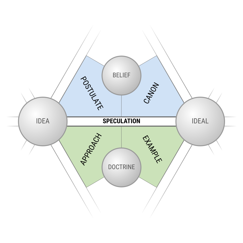SPECULATION - the process of knowing reality through contemplation and theoretical reflection in abstraction from sensory experience; "construction" of being by deriving the world whole from the original categories; distinguish between rationalistic (mathematics) and intuitionist (direct contemplation of the idea) speculation.